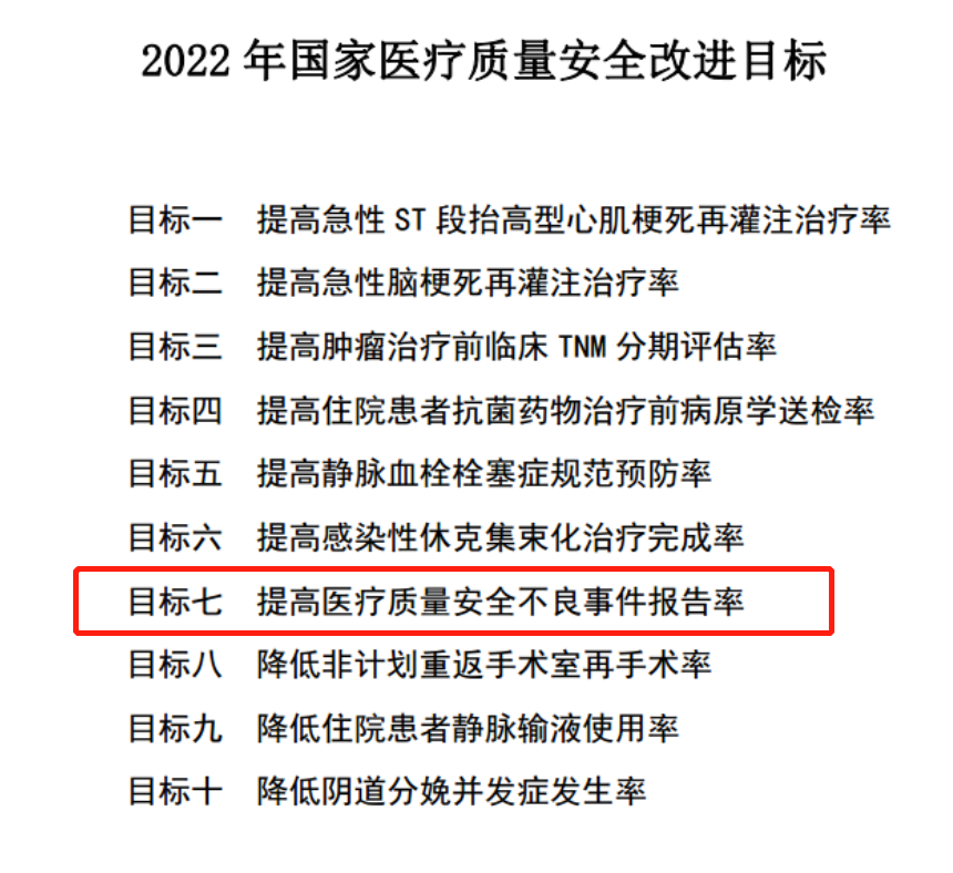 目标七 提高医疗质量安全不良事件报告率(NIT-2022-Ⅶ)