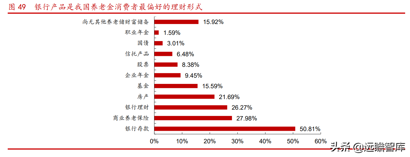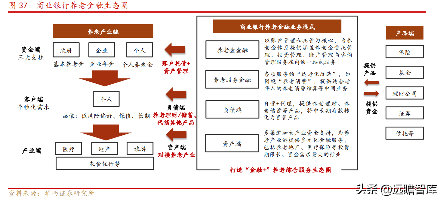 负债端产品来看,银行投资风格稳健,与居民对养老资金中长期稳健可持续收益的需求相契合,因此伴随居民收入水平和养老意识的提升,兼顾长期性和稳健性的养老理财、养老储蓄等产品有较大发展空间。