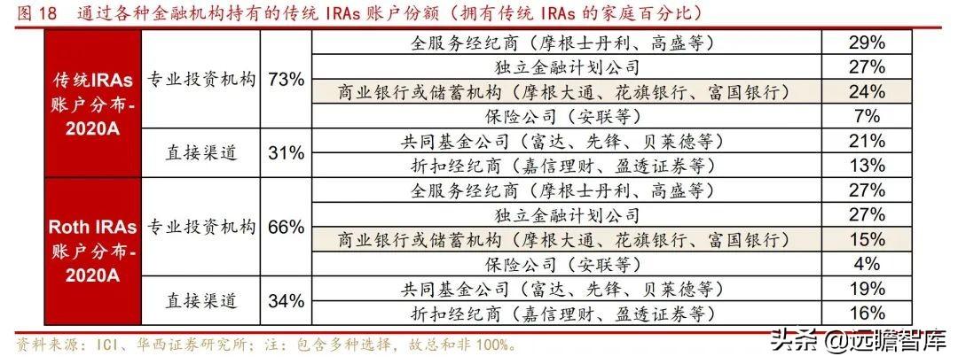 成熟且市场化运作的个人养老金账户体系,与金融自由化生态下的多元金融机构相伴相生。美国个人养老金的账户管理机构多元化,为投资者提供了广泛的可选择空间。