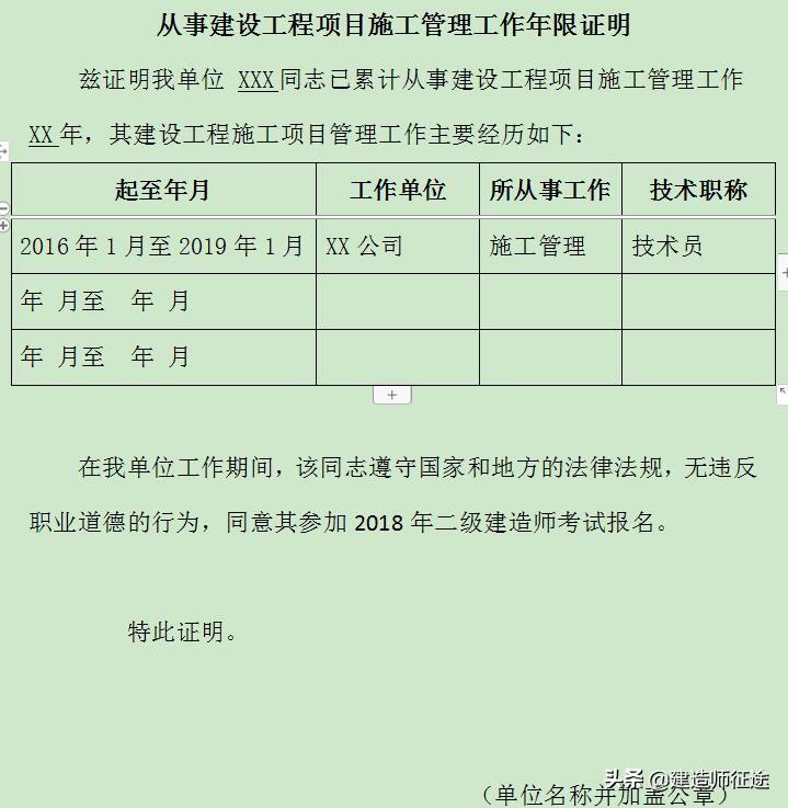 版权声明:我们致力于保护作者版权,注重分享,被刊用文章【二建工作证明模板(二级建造师报名的工作证明年限怎么写)】因无法核实真实出处,未能及时与作者取得联系,或有版权异议的,请联系管理员,我们会立即处理! 部分文章是来自自研大数据AI进行生成,内容摘自(百度百科,百度知道,头条百科,中国民法典,刑法,牛津词典,新华词典,汉语词典,国家院校,科普平台)等数据,内容仅供学习参考,不准确地方联系删除处理!;