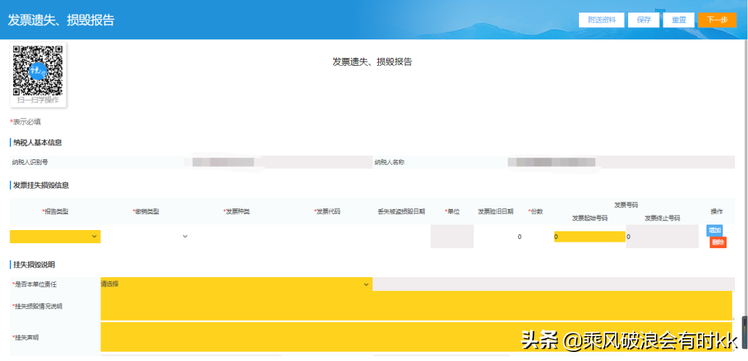 二、综合信息报告—特定涉税信息报告—发票遗失、损毁报告。