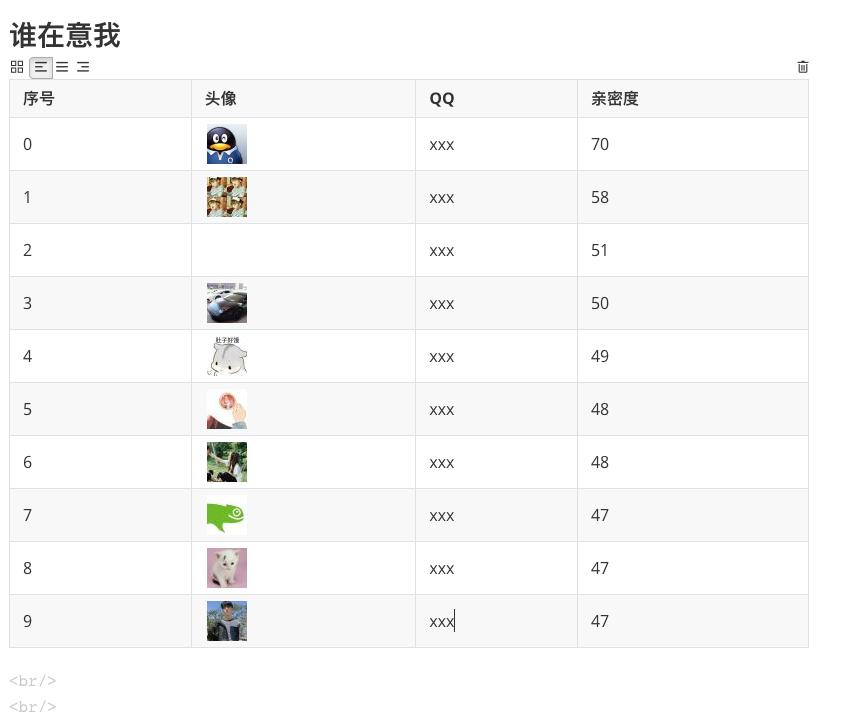 目前本程序获取的数据包括:QQ详细数据、手机在线时间、非隐身状态下在线时间、QQ活跃时间、单向好友数量、QQ财产分析、群聊分析、过去一年我退出的群聊数据、退去一个月我删除的好友数据、所有代付信息、我最在意的人以及最在意我的人。由于相关的数据接口有访问限制,所以本程序并没有对QQ好友进行分析。