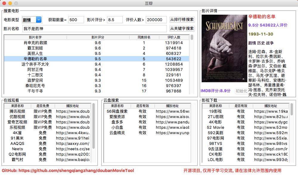 这个项目源于大三某课程设计。平常经常需要搜索一些电影,但是不知道哪些评分高且评价人数多的电影。为了方便使用,就将原来的项目重新改写了。当做是对爬虫技术、可视化技术的实践了。主要是通过从排行榜和从影片关键词两种方式爬取电影数据。