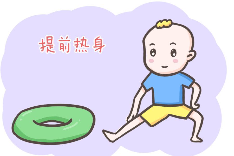 父母要在孩子下水前要帮孩子做一些热身,以免孩子下水后因为脚部抽筋而引发溺水。