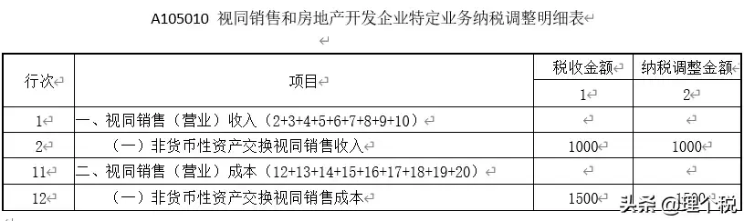 但是用设备直接换取在建工程的,可以填报视同销售收入和视同销售成本,注意,视同销售收入1000万元,可以增加业务招待费以及广宣费的税前扣除基数。