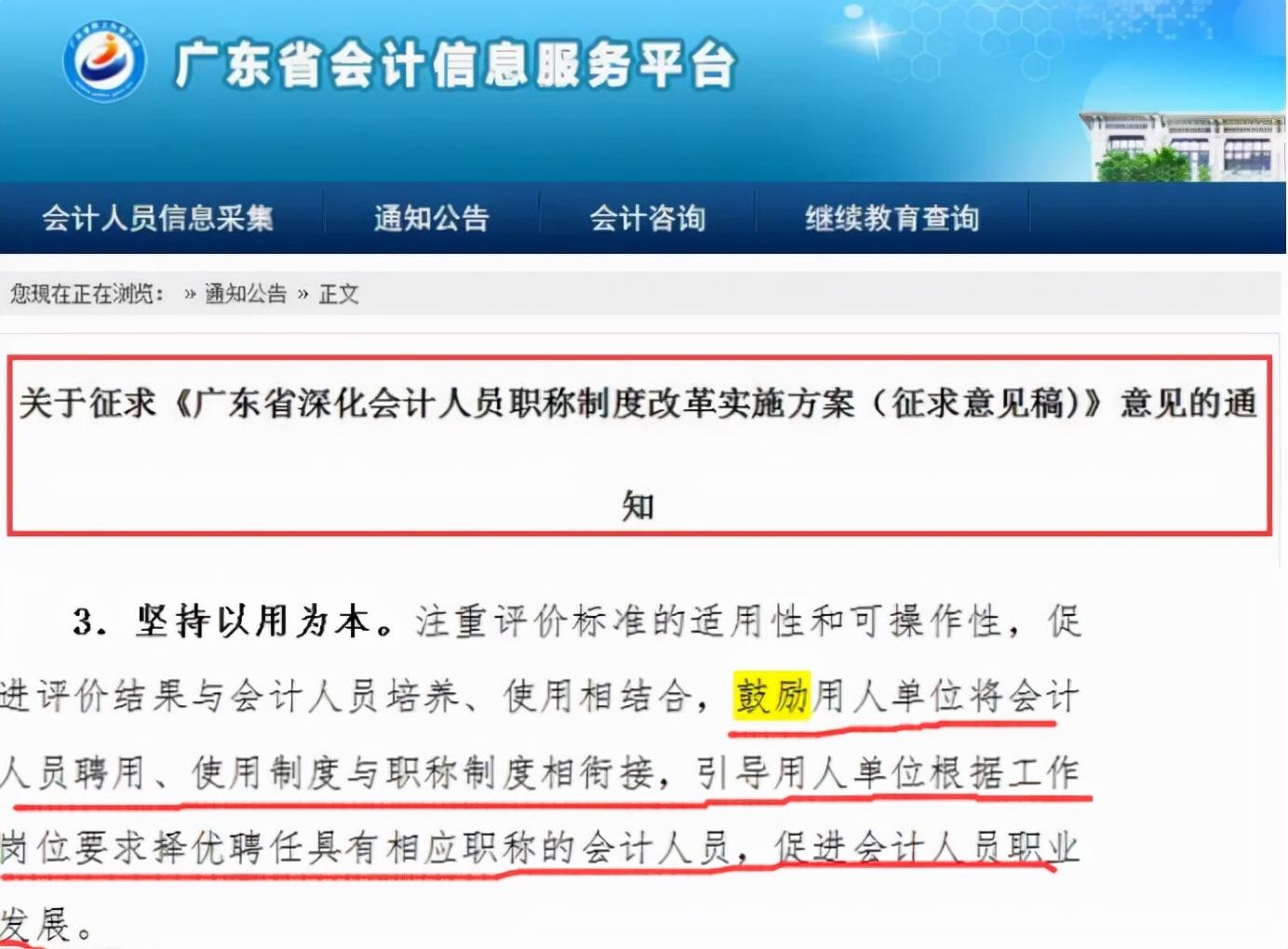 广东省财政厅发布:关于征求《广东省深化会计人员职称制度改革方案(征求意见稿)》意见的通知: