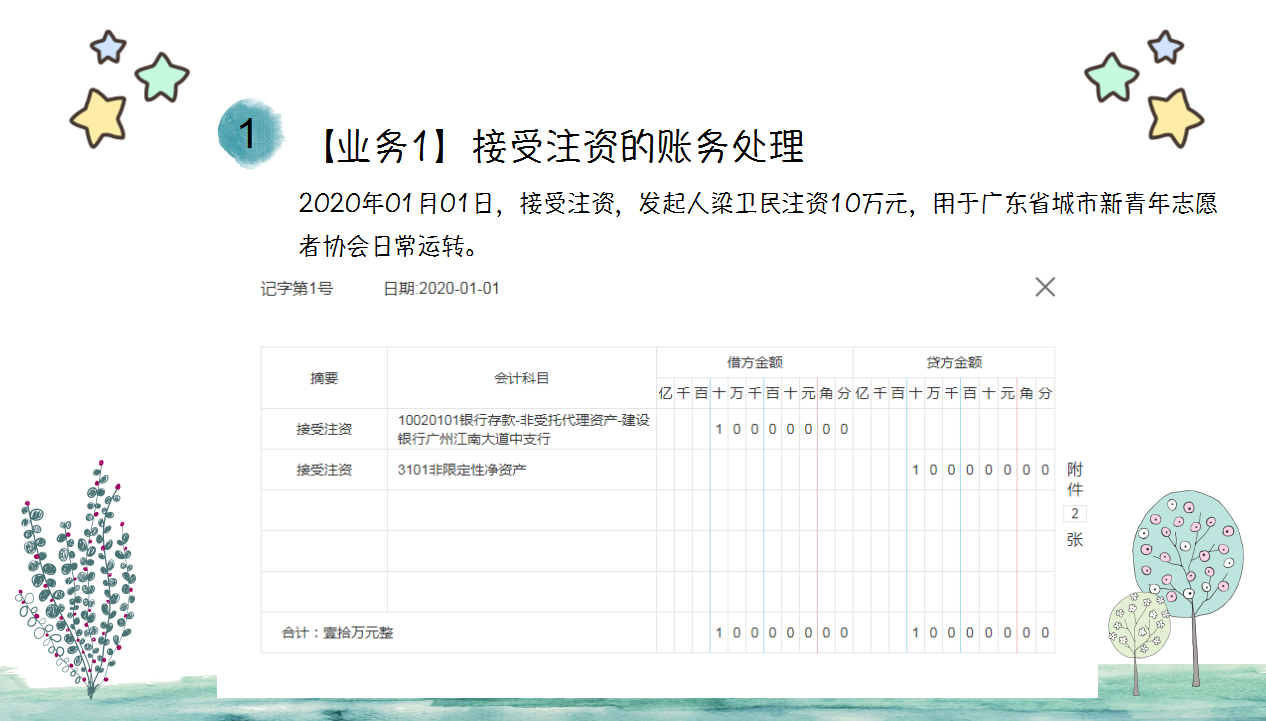 今天以广东省城市新青年志愿者协会的业务为例,带领大家一起看看相关的会计处理是怎么做记账凭证的。