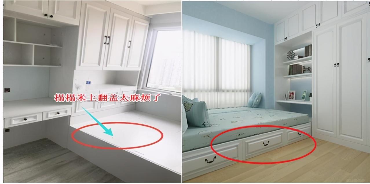 说起这个榻榻米,真是个令人担忧的问题。有很多存储空间,但很难使用。每次你拿东西放东西,你都得爬上爬下。而且,在南方多雨的地方,容易受潮发霉。