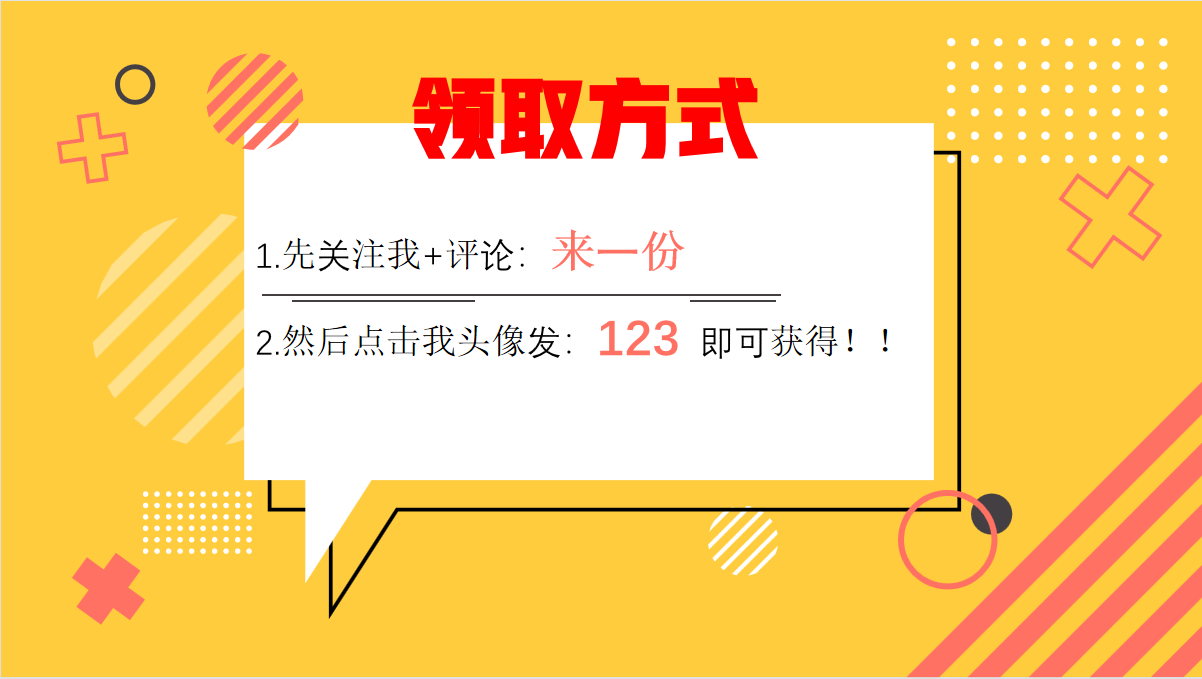 下方留:“来一份”,然后点击我头像发:“123”即可获得!!!
