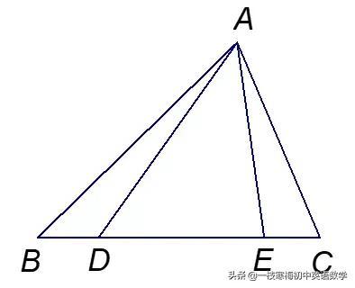 例2 如图,在△ABC的边上取两点D、E,且BD=CE,求证:AB+AC>AD+AE.