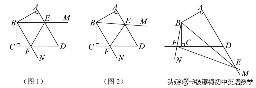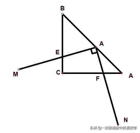 例2 D为等腰斜边AB的中点,DM⊥DN,DM,DN分别交BC,CA于点E,F。