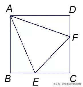 例1 正方形ABCD中,E为BC上的一点,F为CD上的一点,BE+DF=EF,求∠EAF的度数.