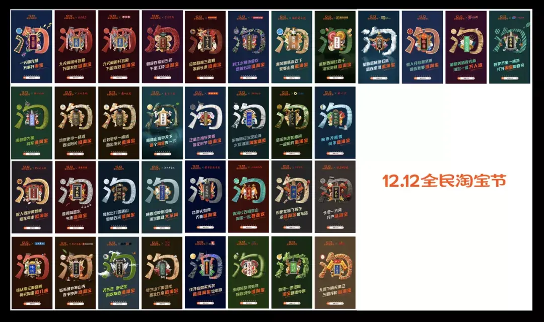 #结合场景做延展# 2020年的全民淘宝节,淘宝发布了34张“一个淘字逛中国”的主题海报,用“淘”字演绎全国街道,将每个省最具代表性、人们最爱逛的那条街的特色装进去。