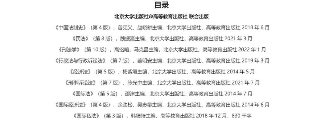 以上便是法学“红宝书”教材的总体梳理,下一篇文章还将详细为大家推介高等教育出版社出版的“法学专业必修课、选修课系列教材”红宝书系列。