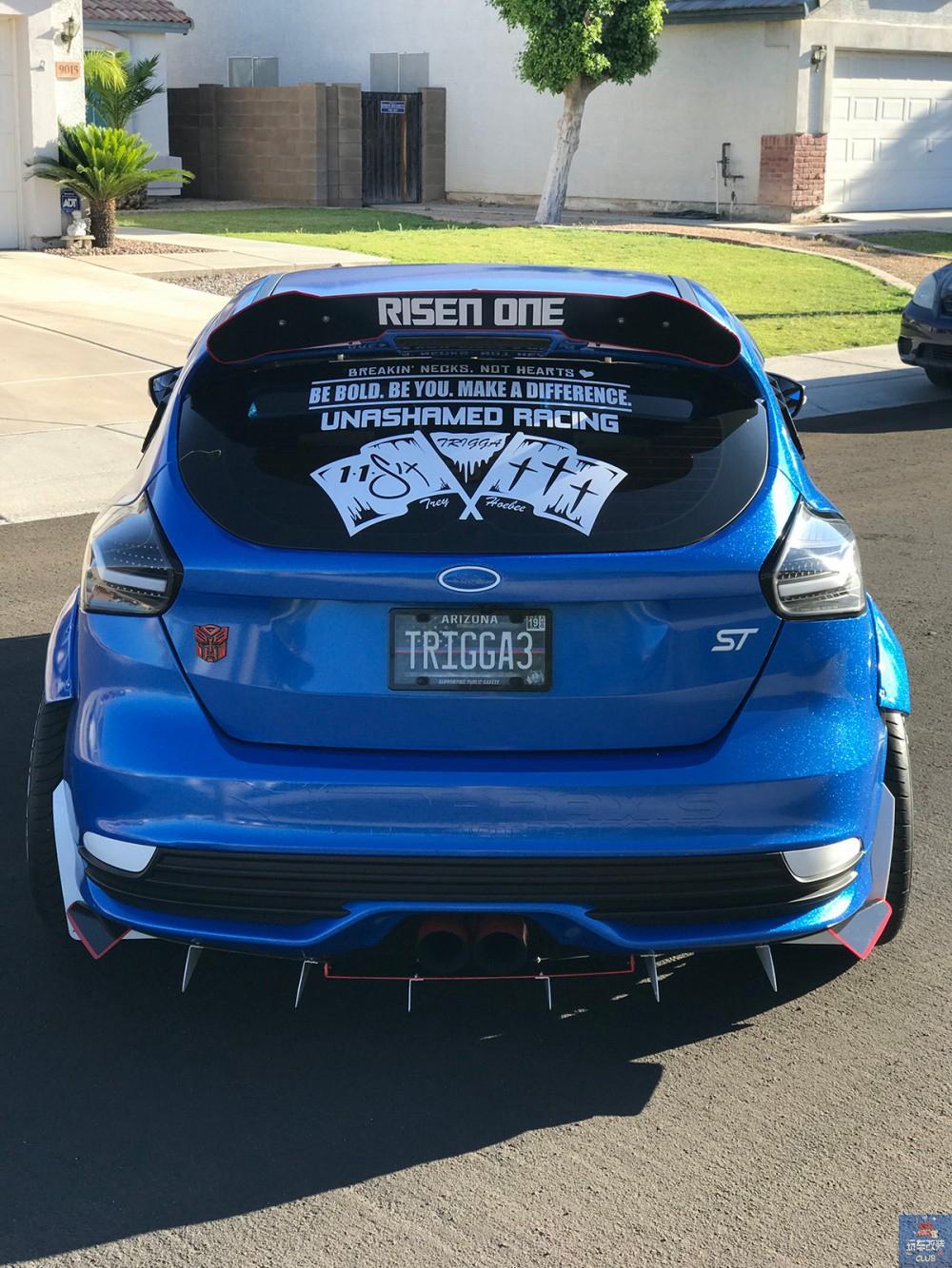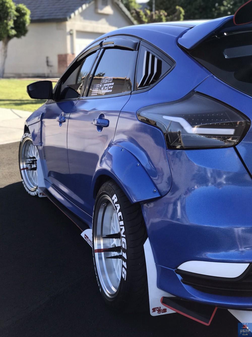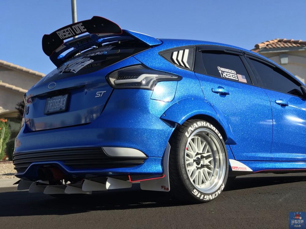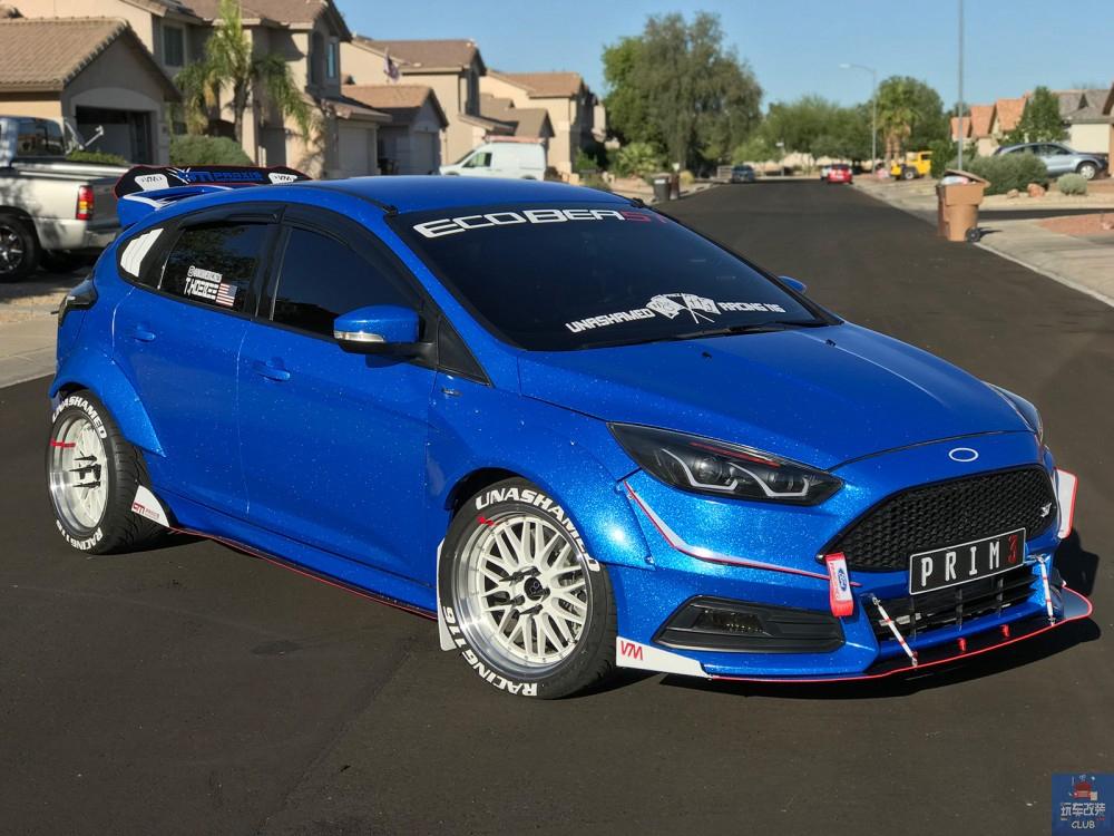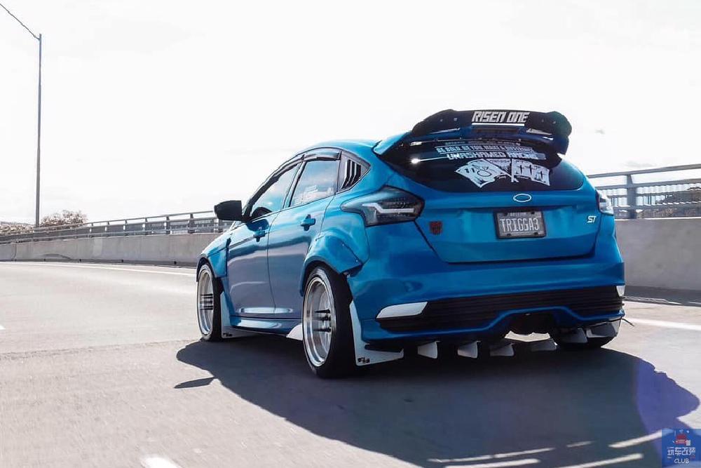 这是一辆2017款福特福克斯ST,外观部分,全车采用了AeroFlow侧裙,Vega前唇,Vega扩散器,Vega尾翼,Battle Aero宽体套件,UK前保险杠,Redline 360前大灯和尾灯,搭配JNC轮毂,性能部分,则换装了aFe冷进气,Boomba泄压阀,Titan Muffers定制排气系统,写入Cobb Accessport二阶特调程序,最大马力可达305匹,内饰部分,则更换了EVO仪表,12英寸Kicker Comp R低音炮和Boom Blasters扬声器,虽然这样的改装风格几乎毫无词语可形容,但只要车主喜欢即可。