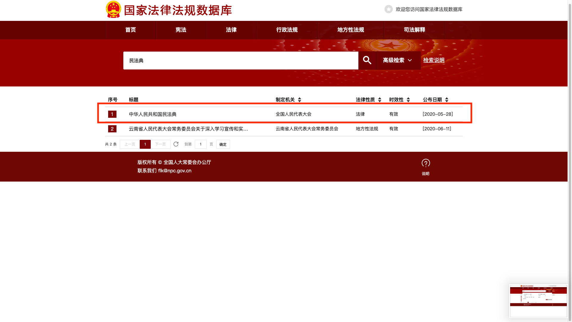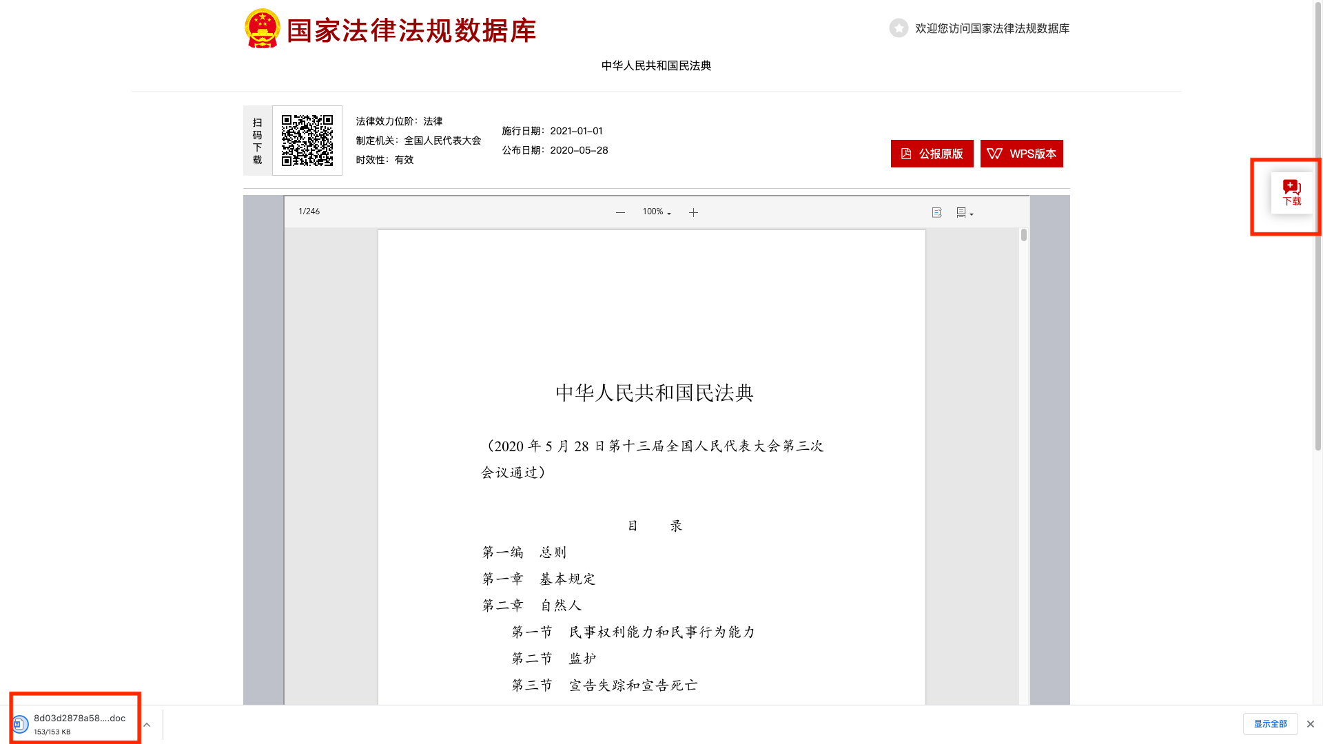 点击“中华人民共和国民法典”