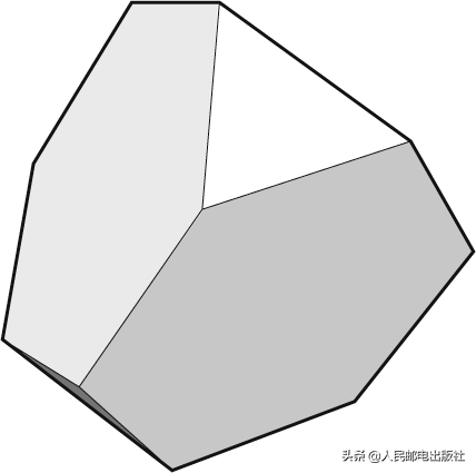 他创造的有些形状是通过修剪柏拉图的立体形状而得来的,制作过程和制作古典足球一样。比如,切掉四面体的 4 个顶点,原来的三角形表面就变成了六边形,而切割暴露出来的 4 个表面则变成 4 个新的三角形。因此,4个六边形和 4个三角形组合起来便构成一个所谓的去顶四面体(如图5所示)。