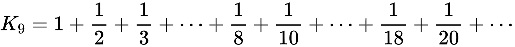 进而,可以求出所有不含'9'的自然数的倒数之和小于