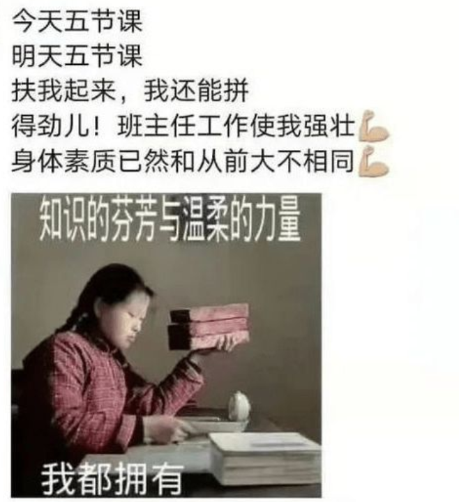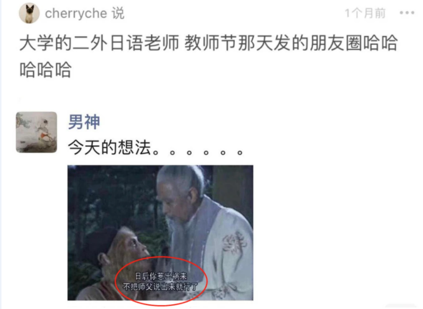 这些老师可能在平时也不会让学生发现他们有趣的一面,所以这样画风反转出其不意的朋友圈,也不容易被学生发现。