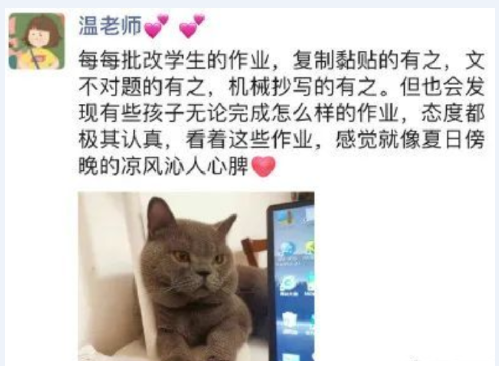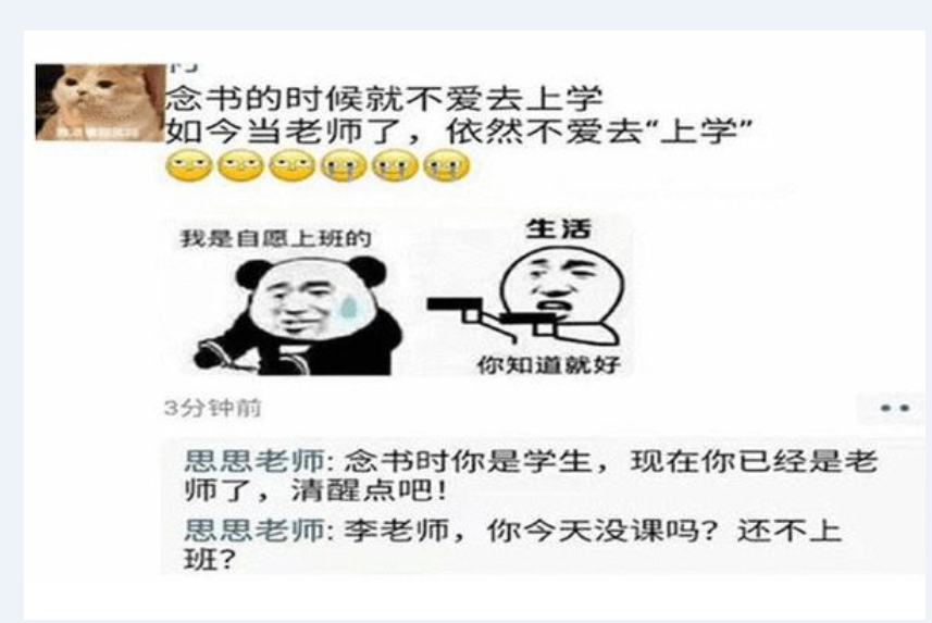 老师发朋友圈忘记屏蔽学生,内容充满乐趣叫人捧腹,妥妥的段子手。如果一位老师能够把自己的工作调侃成段子,那么他一定是非常热爱自己的工作,也会对自己的工作非常负责。