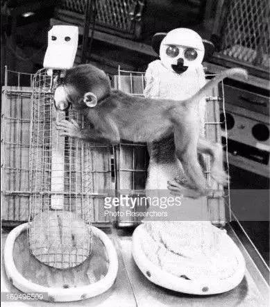 哈洛和他的同事们把一只刚出生的婴猴放进一个隔离的笼子中养育,并用两个假猴子替代真母猴。