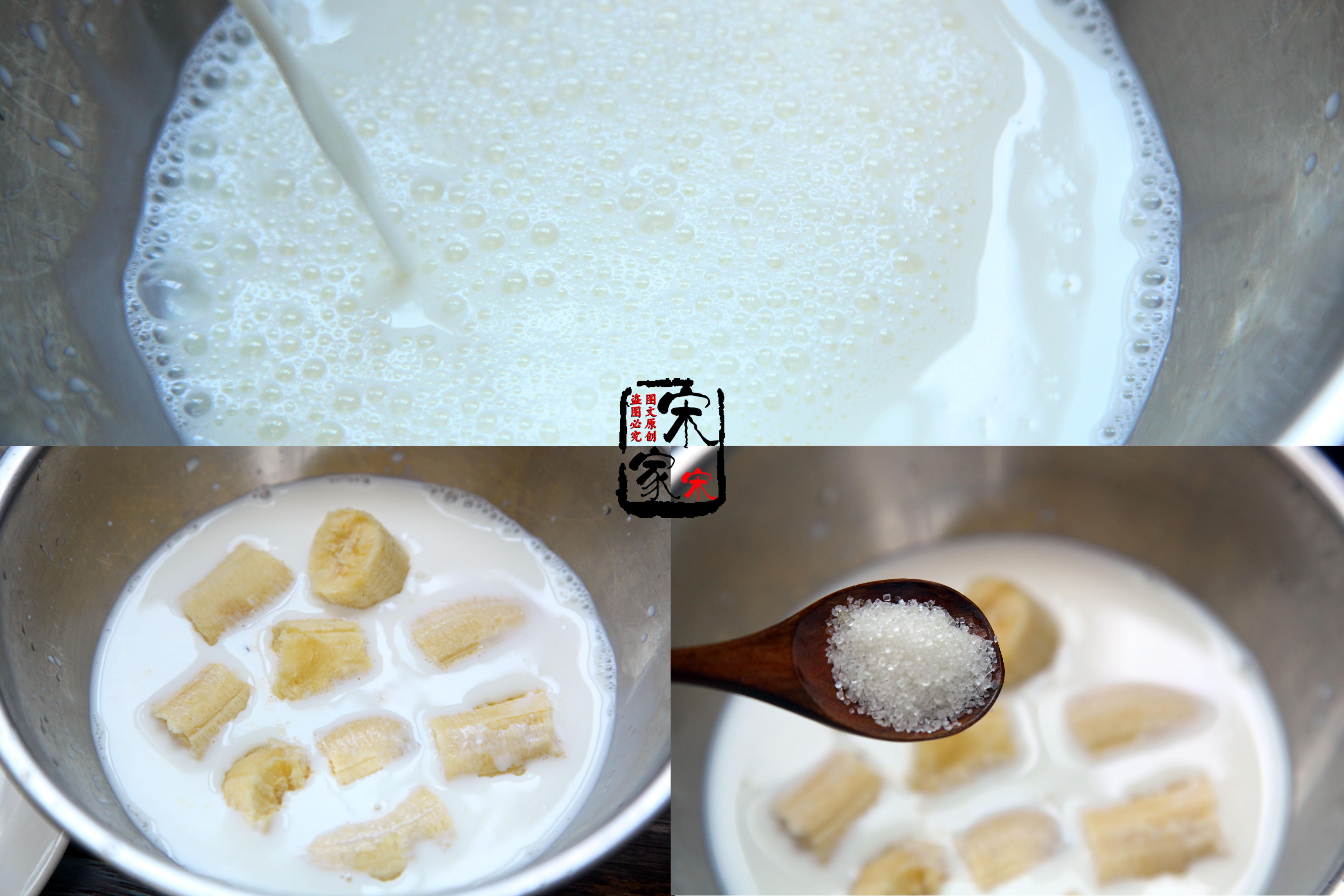 【食材】:香蕉2根、牛奶90毫升、面粉100克、白糖10克、食用油适量、1个鸡蛋。
