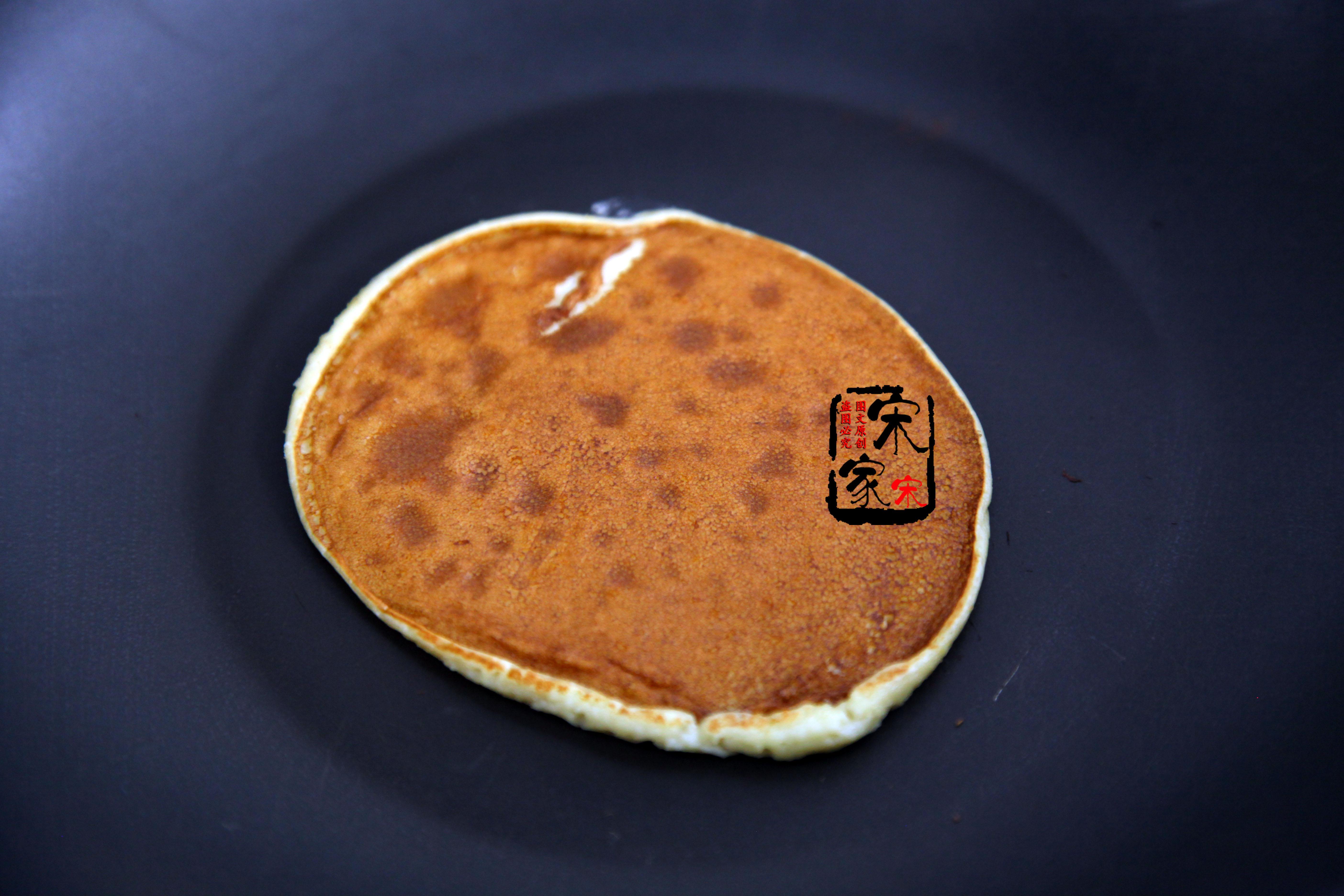 第六步:眼看着表面起了很多的小孔,就可以翻面了,成型的松饼是这个颜色,特别的有食欲。