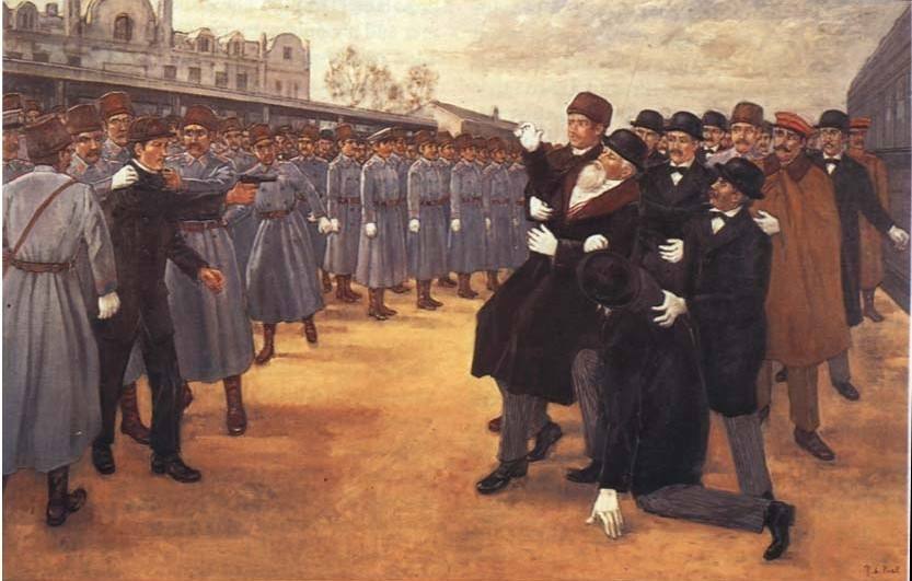 随着两股鲜血的喷出,一场把全世界都卷入的战争开始了。一个月后,奥匈帝国在德国的支持下,以萨拉热窝事件为借口,向塞尔维亚宣战。接着德、俄、法、英等国相继投入战争,第一次世界大战爆发 。