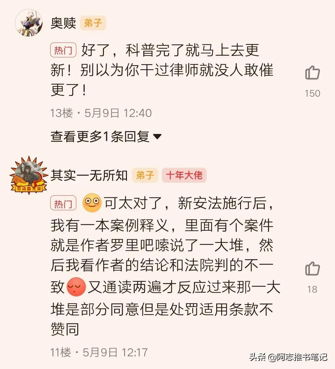 要说还是书友实在,好了,科普完了就马上去更新!别以为你干过律师就没人敢催更了!狗作者快滚去更新(狗头)!
