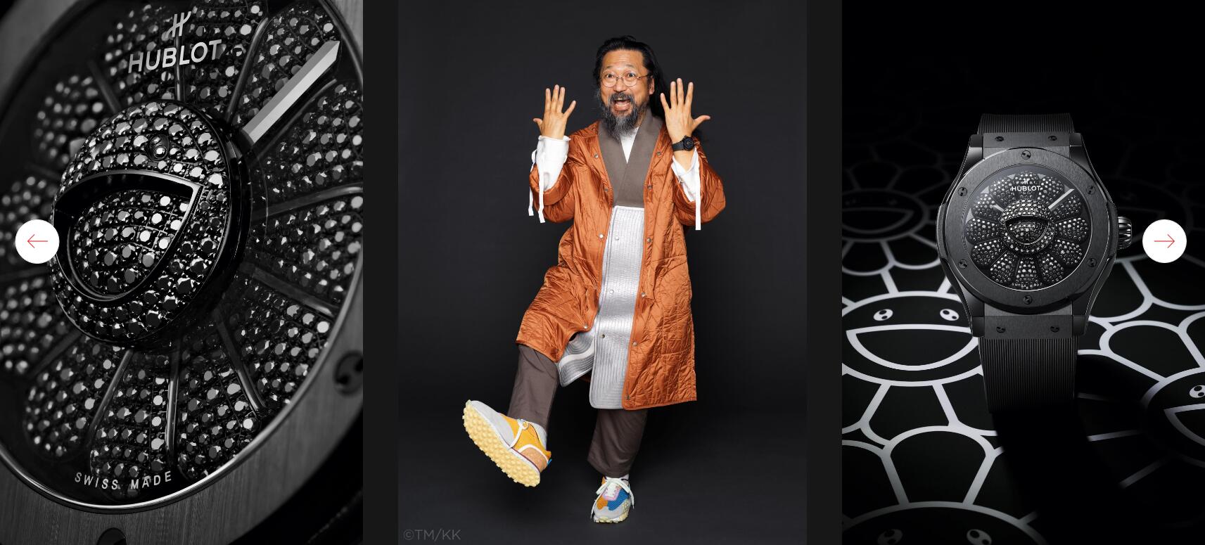 2021年12月,瑞士奢华腕表品牌 Hublot(宇舶表)与著名日本艺术家村上隆(Takashi Murakami) 合作,以村上隆标志性的太阳花为灵感,打造了一款全黑色的太阳花腕表。