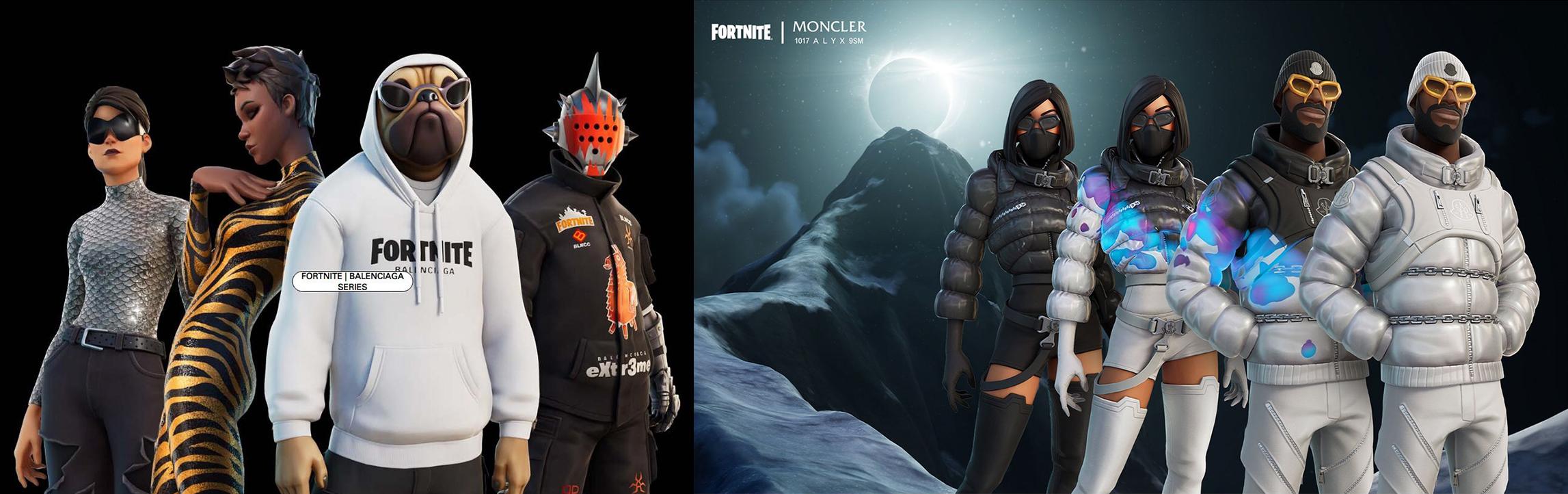 9月,Balenciaga 为《堡垒之夜》游戏中最受欢迎的角色制作了新衣服,这些造型中包含了双肩背包、围巾等配饰。Balenciaga的Speed 3.0运动鞋在游戏中变成了锄头道具,Hourglass 包变成了滑翔伞道具。Balenciaga还在游戏中开设了一家零售店,在虚拟的广告牌上展示这些新衣服。