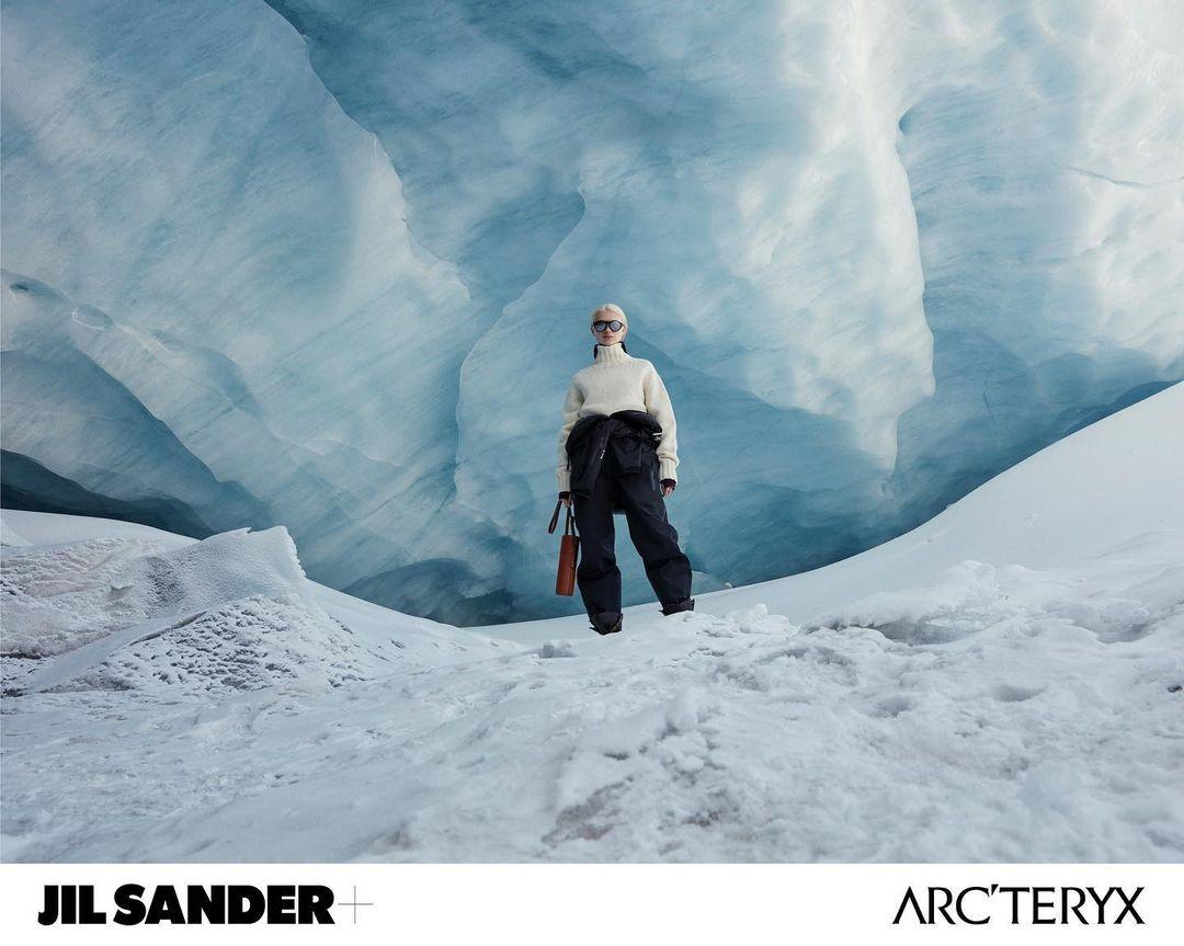 2021年11月,德国设计师品牌 Jil Sander(吉尔·桑达) 旗下以自然为灵感的 Jil Sander+ 系列与加拿大户外品牌 Arc‘teryx Equipment(始祖鸟)合作推出秋冬胶囊系列。该系列围绕滑雪和单板滑雪等山地活动场景开发,包含三款夹克(男款、女款、中性款)、一款背带长裤以及一款男女通用的连体装。