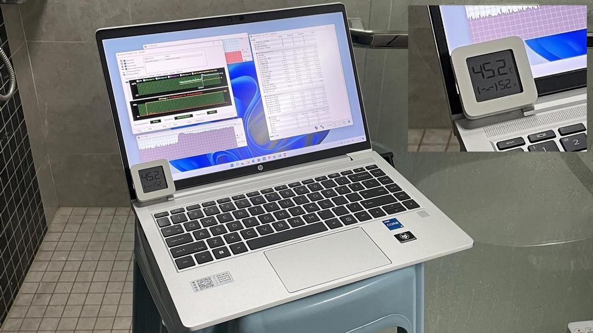 值得一提的是,战66五代酷睿版同样通过了19项军标认证,其中包括模拟恶劣气候环境的低温、防尘、湿度、高度测试,也包括跌落、冲击、振动等运动环境的测试,可靠性很高。为了验证日常生活中该机在高温环境下的可靠性,牛叔将笔记本放入家中的浴室,将热水器出水温度调整到50℃并持续打开花洒、开启暖风机到高热档,关闭门窗,将战66五代酷睿版放置在暖风机下方,一段时间后温度计显示室内温度45.2℃/湿度52%,暖风机出风口温度达到了57℃,持续运行AIDA64考机20分钟左右,战66五代酷睿版全程运行稳定,没有出现任何问题。