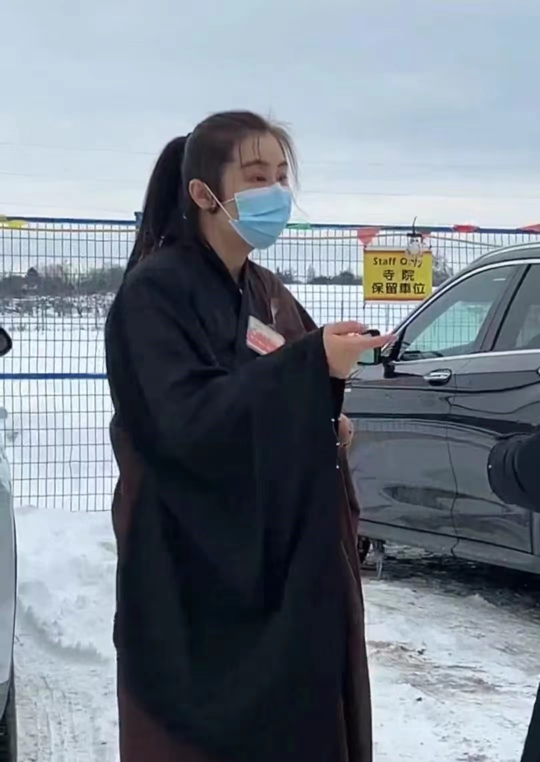 此前,有网友晒出王祖贤冬日现身灵岩山寺的照片,她手拿佛珠,穿着海清服,正在与友人聊天。