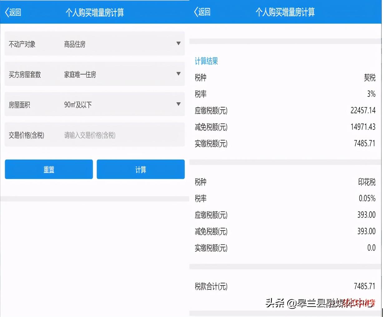 温馨提示:税费计算器的计算结果仅供参考,实际税费以税务机关审核后的结果为准。