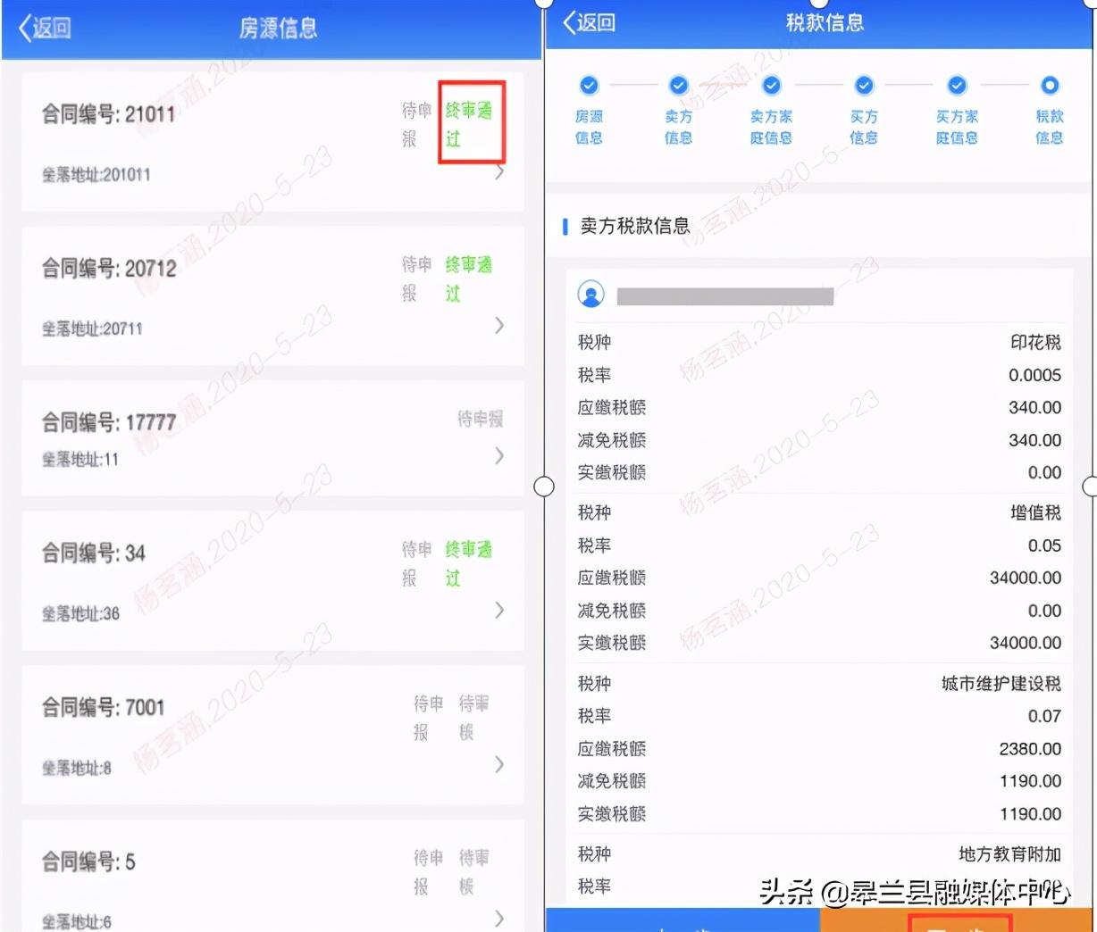 税费缴纳:申报完成后买卖双方分别进行税费的缴款