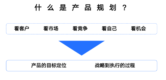 产品规划是以外部市场环境、用户需求、公司战略、竞争状态、产品目标为根基,设计制定出可以满足用户和市场需求、具备行业竞争力、达成公司战略目标和产品目标的方向。