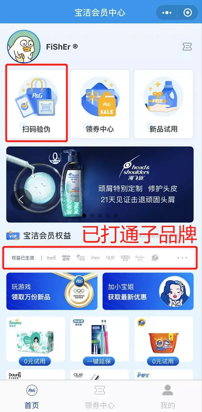 目前,宝洁采用各个子品牌建设独立的会员服务平台,以运营、权益独立,积分、流量共享的方式经营。