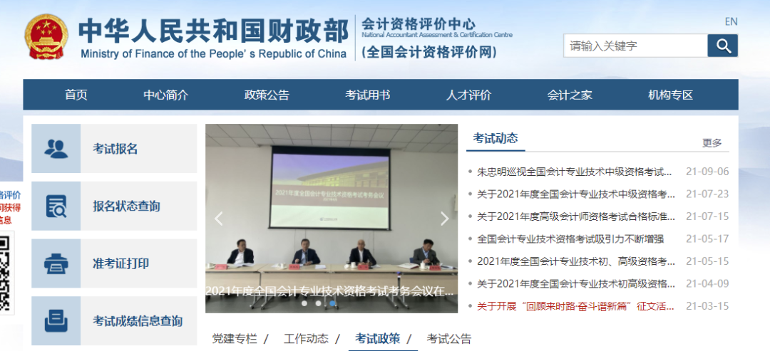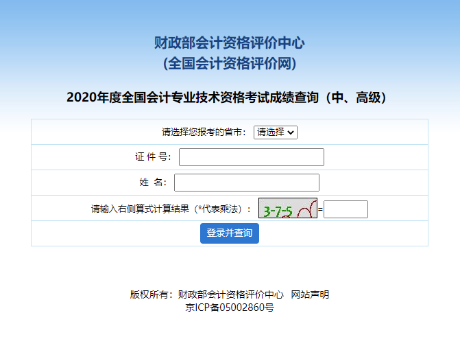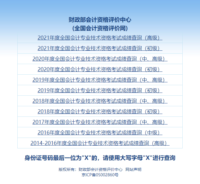 进入全国会计资格评价网首页,点击“考试成绩信息查询”;