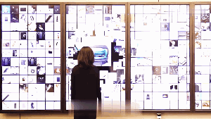 互动方式:以五块大屏拼接成一面“显示墙”,当玩家靠近屏幕,屏幕会自动浮现操作提示引导用户进行下一步浏览。