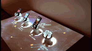 互动玩法:用户把手机从展台拿开后,展台桌面就会逐渐浮现该款手机的信息,并伴随奇幻的特效。
