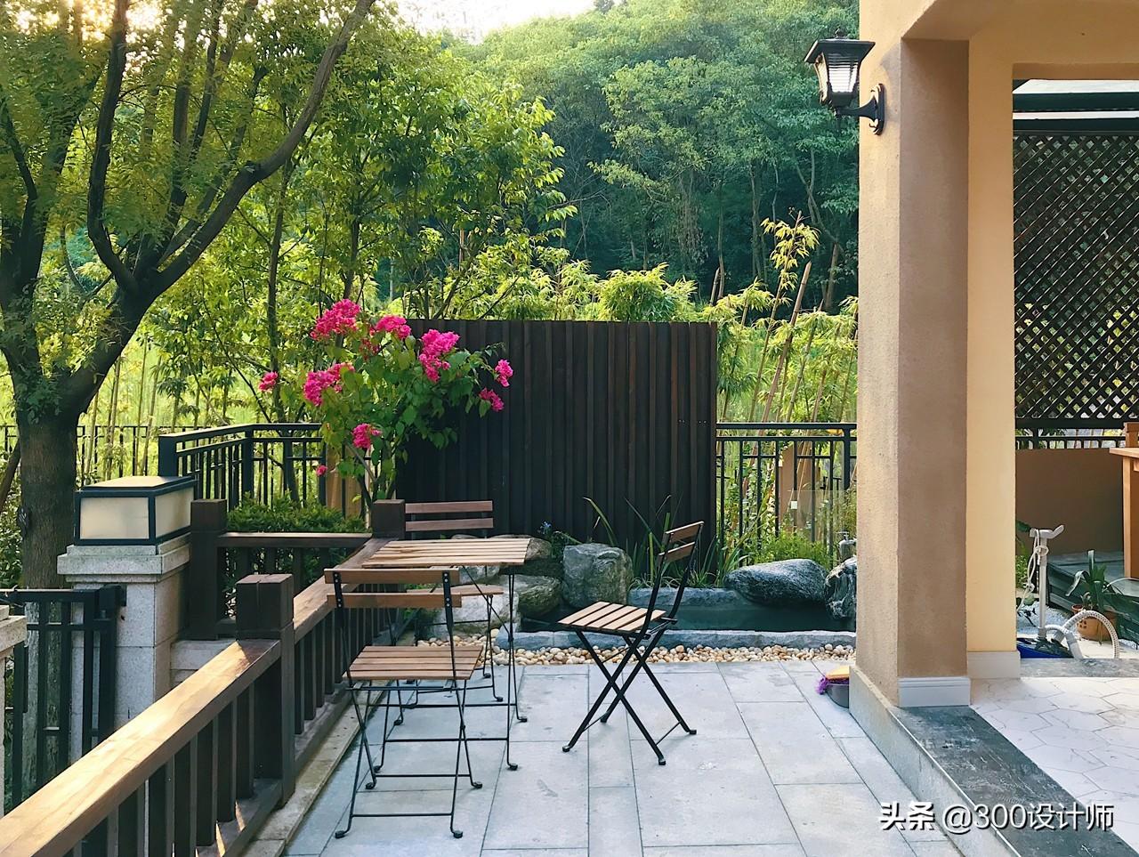 庭院造水景,种上不同季节的花卉植物,让阳光和风自由穿梭,这方天地四季都灿烂多彩。放上几把椅子,闲谈、静坐最是自在不过。