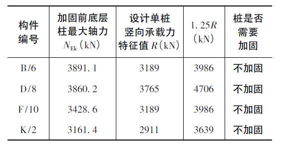 表1 加固前底层柱最大轴力与基桩承载力对比表