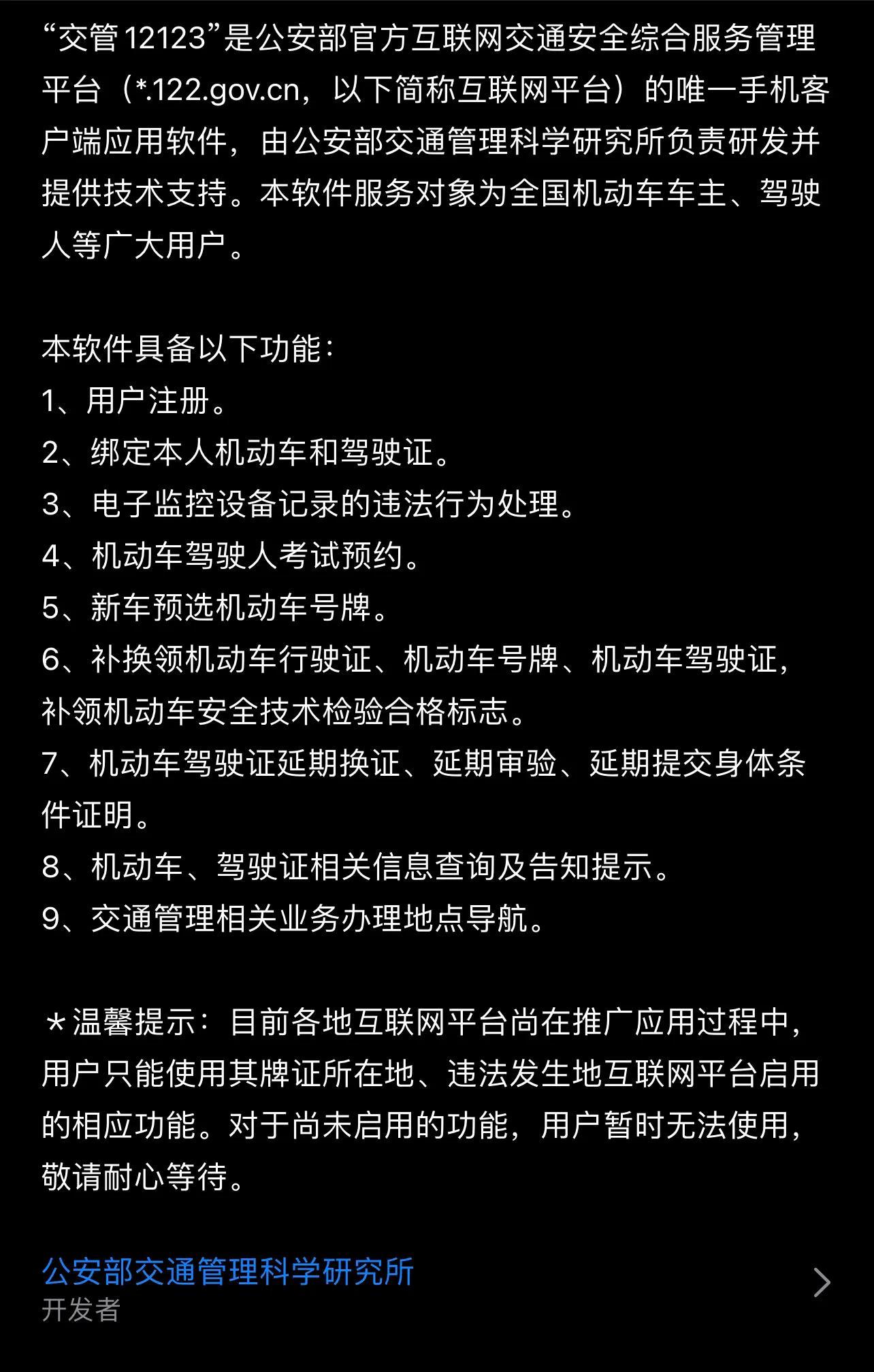 全国交通互联网综合服务平台,除了港澳台违法,内地所有城市违法处理都可以在这个app上使用,非常方便。