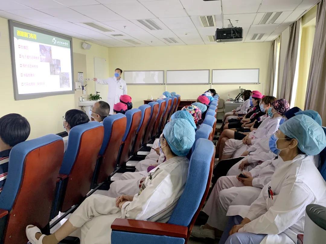 门诊防控一线工作人员来自医院多个部门,为了让他们能够掌握标准化的处理流程,对各种问题都能做到应对自如、合理解决,工作组在繁忙的工作中特别抽出时间,短期内进行了4期共8场培训,从最新防疫规定到最常见问答,从应急处理流程到AED的使用,内容涵盖了工作中可能涉及到的方方面面。