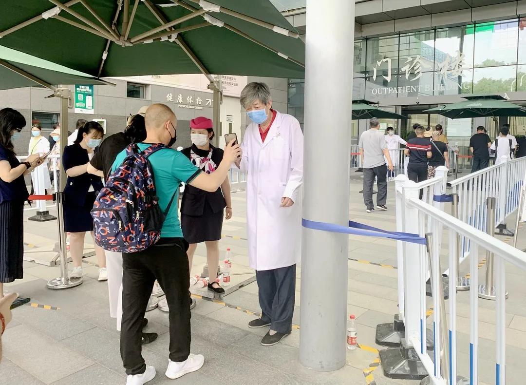 "医院领导一直很关心一线工作人员,多次指示要做好后勤保障工作,目前已为大家支起了遮阳伞,也建立了休息室。"工作组负责人张智说。在采访过程中,他不时被同事叫去处理问题,像陀螺一样忙个不停,也经常被患者的各种询问打断,他都会停下来一一耐心解答。"很多患者从外地大老远来到协和,非常不容易,我们一定要做好解释工作。"