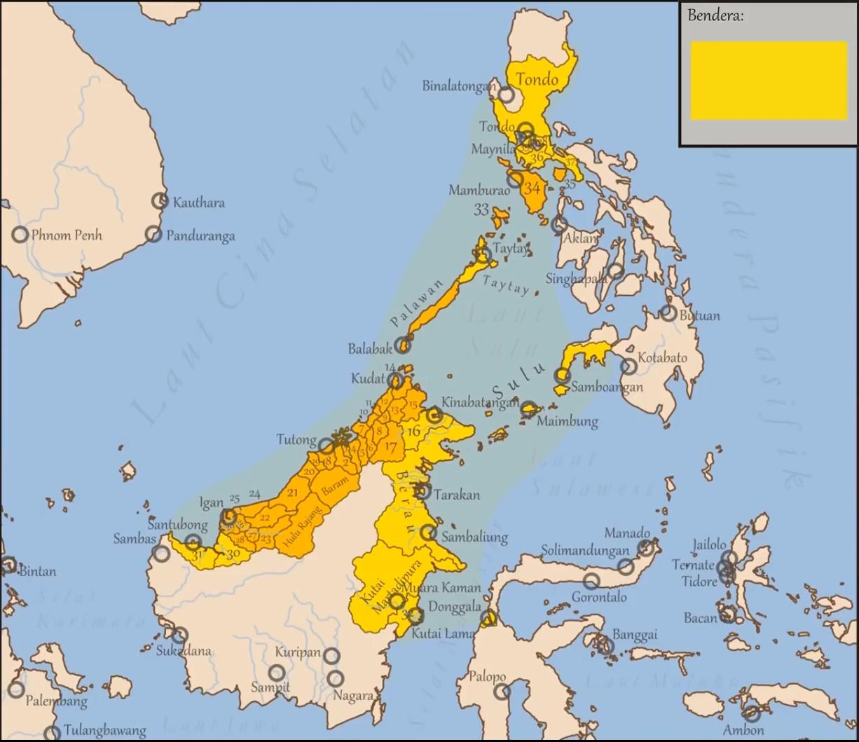 到了16世纪时,文莱更是变成了一个几乎覆盖加里曼丹岛以及菲律宾群岛部分地区的大帝国,史称文莱帝国,辉煌之极。