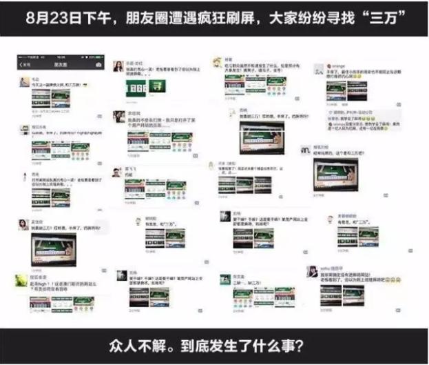 这是一份项目定制的麻将牌,特将“三万”独立放置,并由身着“三万”的麻将服饰的工作人员亲自为业界大咖们送上门。大佬们纷纷自发在朋友圈发声,将本次活动效果再次推向一个峰值!