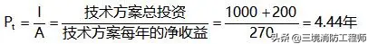 1. 当技术方案实施后各年的净收益(即净现金流量)均相等则Pt=I/A (静态投资回收期=总投资/净收益) I--技术方案总投资;A--技术方案每年的净收益,即A=(CI-CO)2. 当技术方案实施后各年的净收益不等则