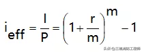 P:年初资金;r:名义利率;m:一年内的计息次数(3)由此可见,年有效利率和名义利率的关系实质上与复利和单利的关系一样。(4)每年计息周期m越多,ieff与r相差越大。